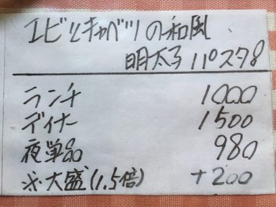 基本メニューのほかに、手書きのおすすめメニューも。