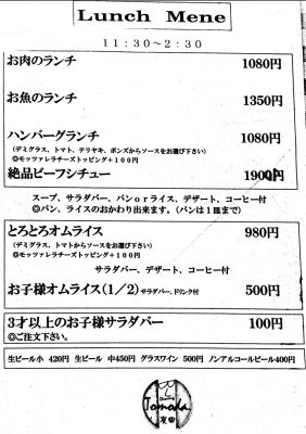 こちらがランチメニュー。