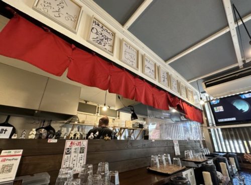 カウンターの上にはサインなども飾られており、とてもきれいな店内。