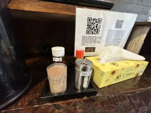 調味料の奥には外国語の案内もあります。