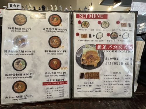 入店した時はとんこつ一択だったのですが、メニューをみて気持ちが揺らぎます。