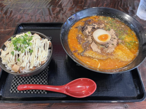 こちらはカレー拉麺のミニマヨチャーシュー丼セット。