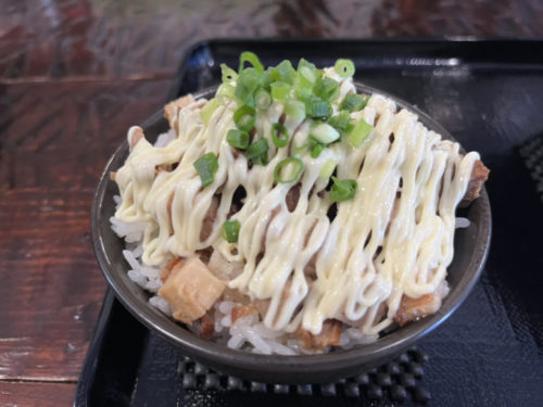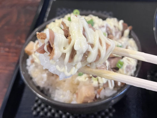 刻みチャーシューが沢山のったミニマヨチャーシュー丼。マヨラーにはたまらない一品。