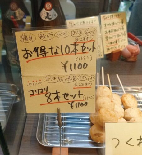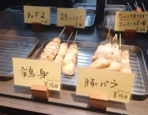 ねぎま(194円)やつくね(118円)、とり皮(129円)などベーシックな焼き鳥や