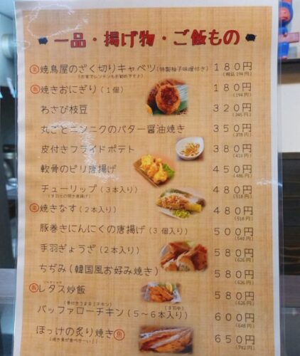 その他、ケースに並ぶ焼き鳥や、居酒屋で見かけるメニューも。