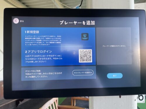 1打席ごとに設置されているモニターから、トップトレーサーのアプリでQRコードを読み込むと、使用できます。