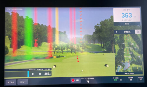 また、何球かボールを打ってみると前回どんな軌道だったかも残っているので、さっきのスイングアドレスと何が違ったのか?考えながら練習できるのが最大のメリットです。