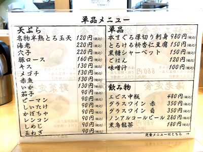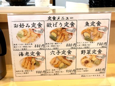 オープン当初は“天丼専門店”というチャレンジ的なお店だったのですが、現在は天ぷら定食系が中心となっております。現在も天丼店時代のメニューは健在で、特に看板メニューであった「超天丼」は、今も変わらず人気のメニューのようです。