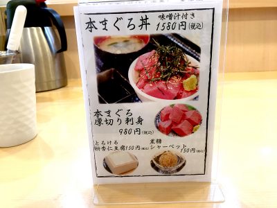 とはいえ、私の当初の思いを迷わせる魅力的なメニューが満載!本マグロ丼まであるんですね。いやーこれはぜひ次回に。