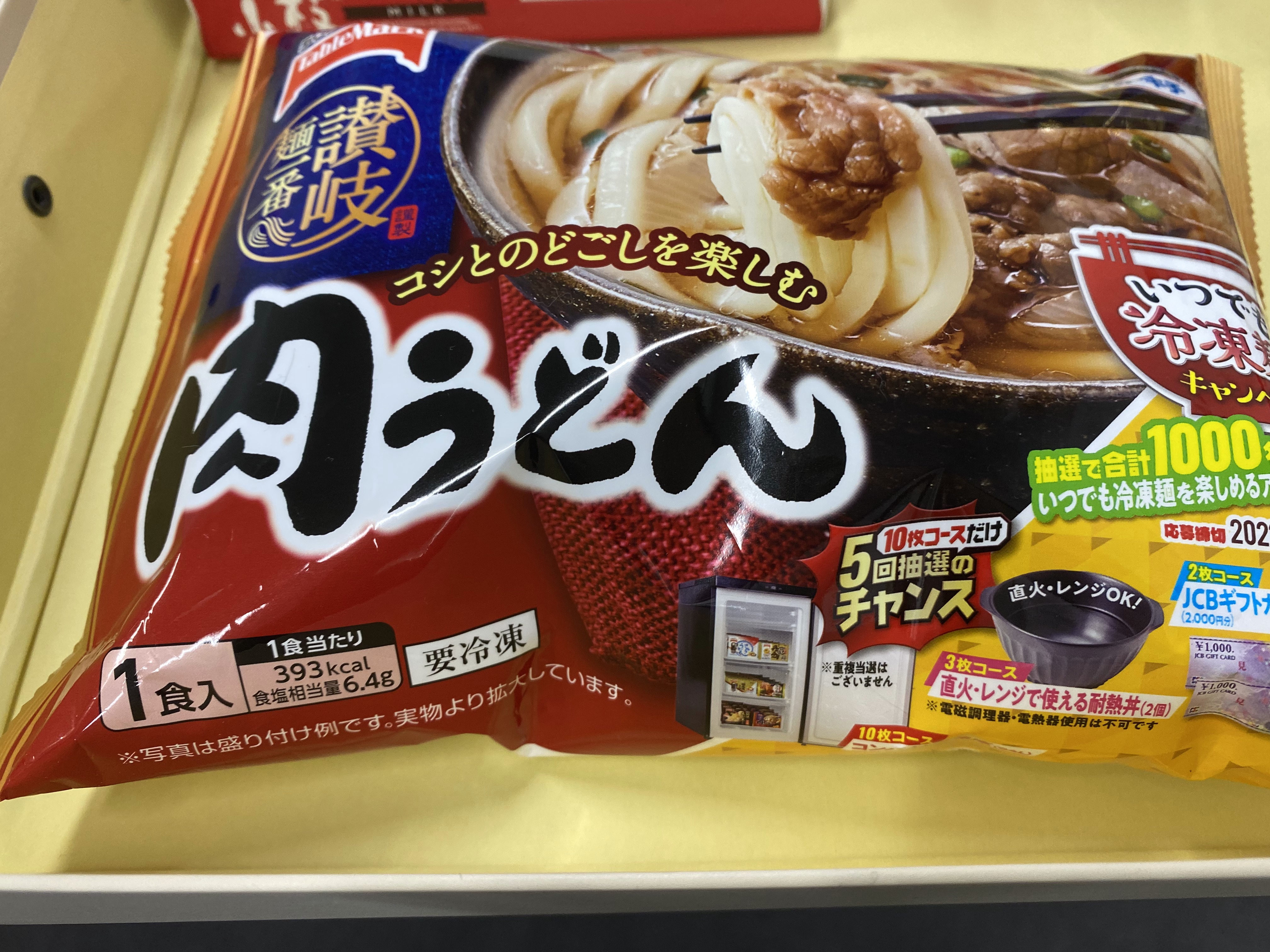 麺はモチモチ、そして甘辛いお肉が入った冷凍うどん。