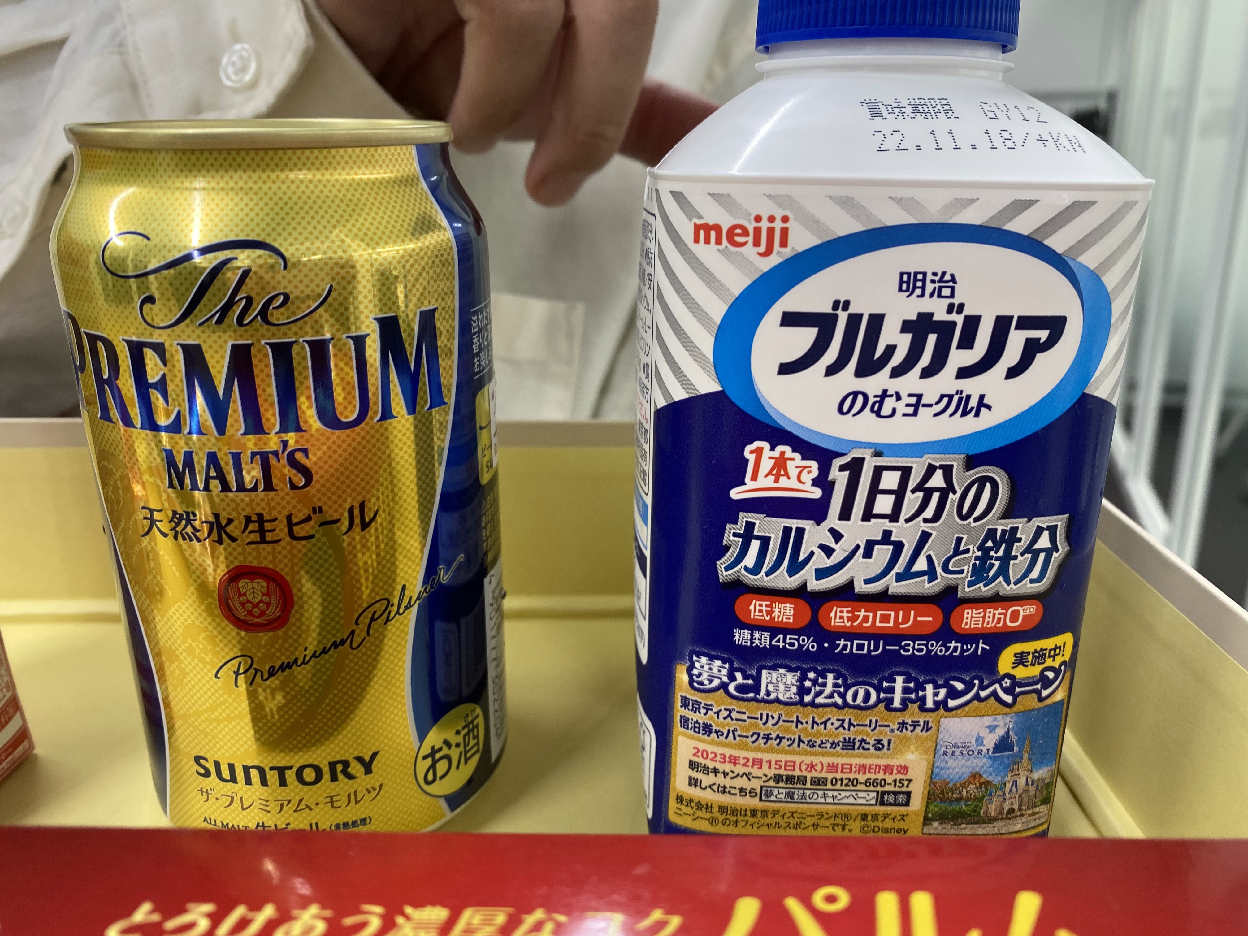 固形ばかりじゃアレなので、プレモルとカルシウムと鉄分入りの飲むヨーグルト、そしてSAVASもスタンバイ。