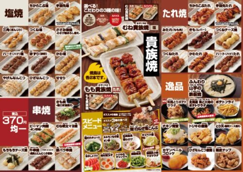 鳥貴族の大きな特徴は税込370円均一の焼鳥屋であること。