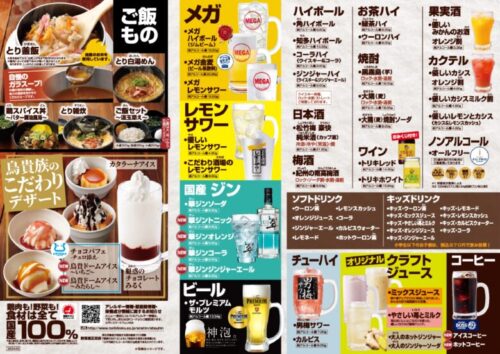 焼鳥は国産鶏肉を使用、また主要食材の国産比率を高める「国産国消への挑戦」を2014年より開始し、2016年10月より使用食材を100%国産化しています。