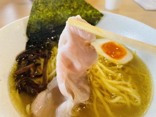 薄いチャーシューがお上品。ペロリと食べてしまいました。卵もまた口の中でとろけるような煮卵で素晴らしい。