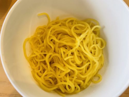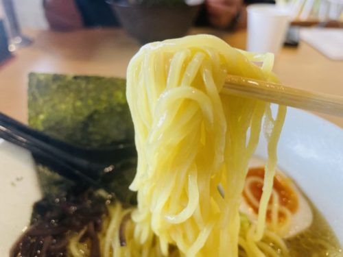 そしてそして、この美しい卵ちぢれ麺。程よく歯ごたえがあり、卵の風味も満足感に繋がります。