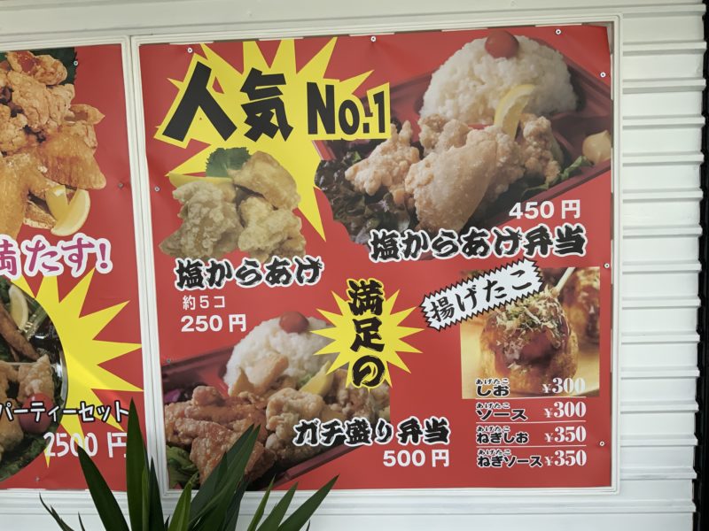 からあげは塩とにんにく醤油の2種類があって、どっちも味がしっかりしているし、ジューシーで美味しいんですよね。県内には5店舗あります。