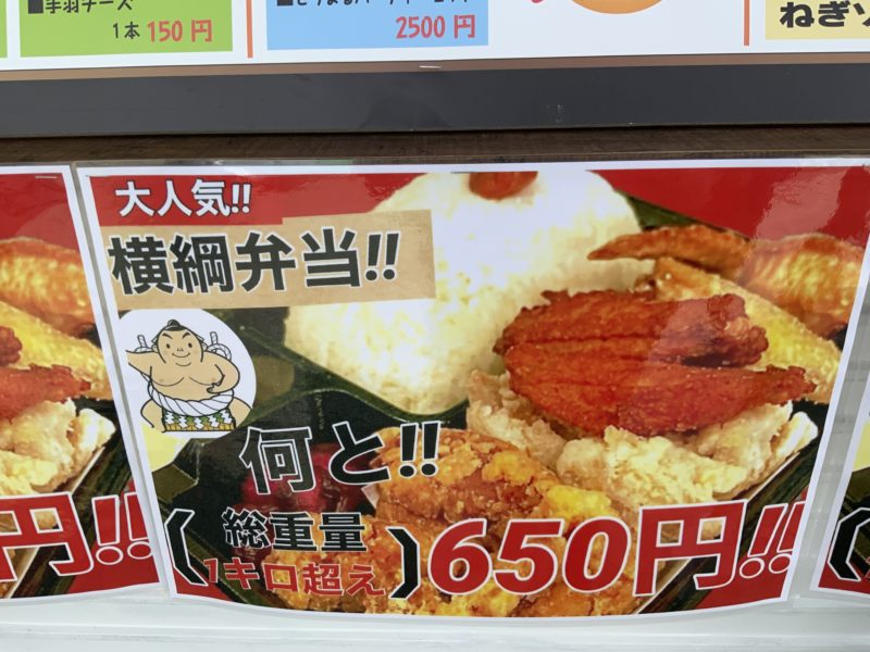 総重量1キロ超えという横綱弁当(税込650円)。私のようなデブ大歓喜のボリュームで、しかも1キロ超えで650円という破格のお値段!!
