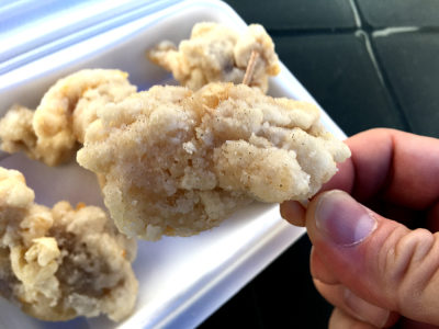 一個のボリュームにも驚きます。ガブっとかぶりつくと揚げたてなのでアチチ!となりますが、それでも旨味が熱さにまさり、ついつい食べ進めてしまいます。