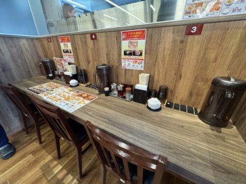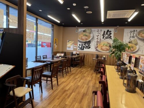 店内はこんな感じ。テーブル席もカウンター席もあるのですが、特にカウンター席は前面を壁で仕切られているので、目の前のラーメンと真剣に向き合える環境です。