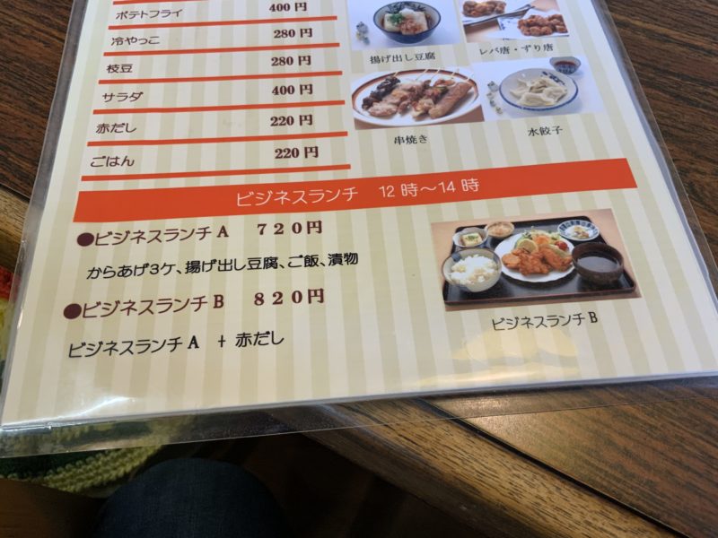 今回のお目当ては入り口に書いてあるビジネスランチ。ありていに言えば「唐揚げ定食」です。