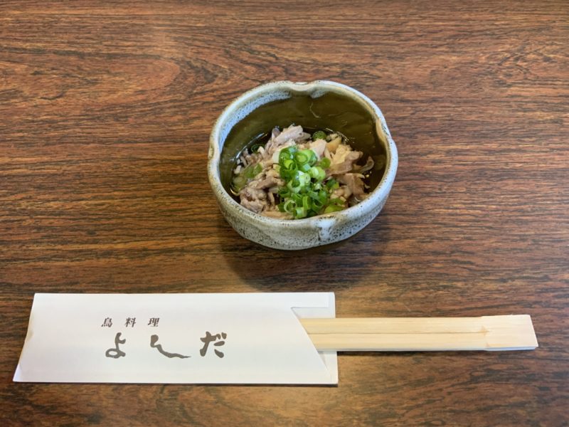 「ちょっと時間かかっちゃうので、これでも食べて待っててください」と特別に鶏皮の酢の物をサービスしてもらいました。