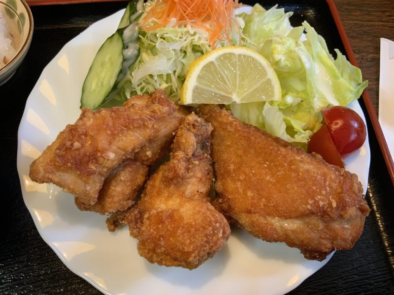 メニューに「からあげ3ケ」と書いてあったので、ちょっと少ないかもな…とか思っていたのですが、