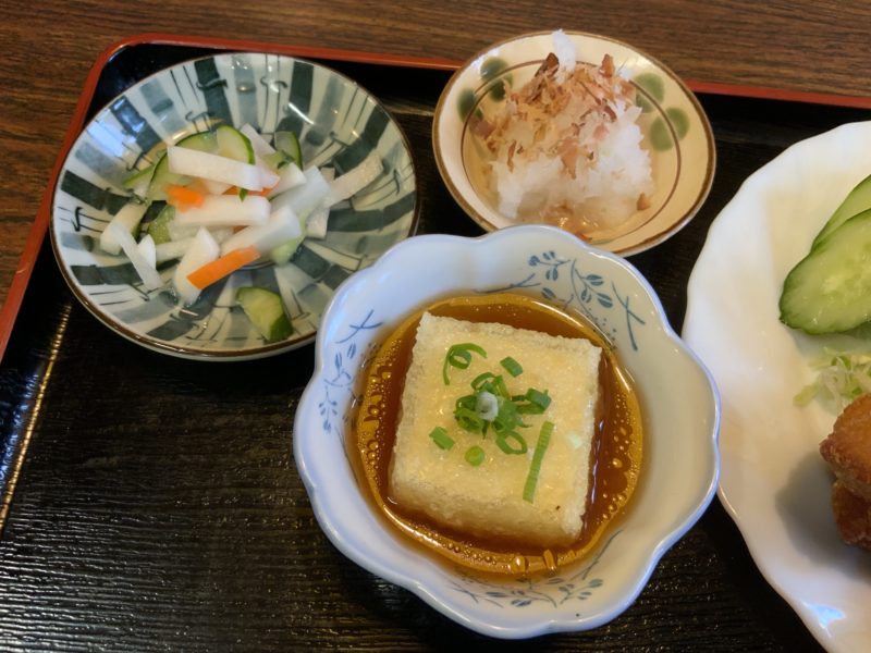 揚げ出し豆腐と、お漬物、大根おろしも嬉しいですよね。最近、こういう小鉢が好きなんですけど老けてきたんでしょうか。