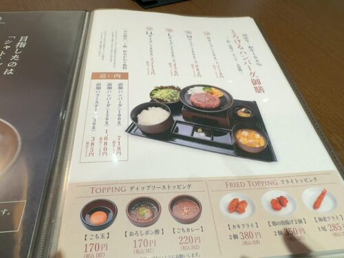 メニューは店名にもなっている名物「とろけるハンバーグ御膳」をはじめ