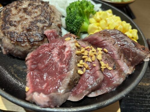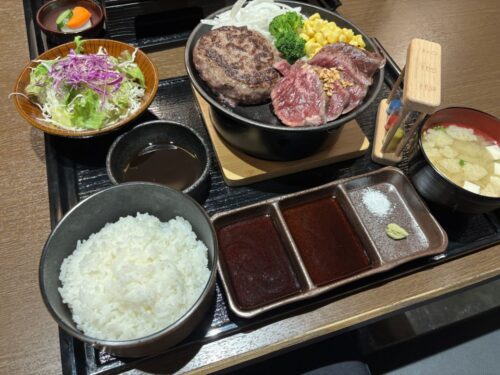 続いて、とろけるハンバーグとステーキコンボ御膳(Mサイズ)3,050円(税込)