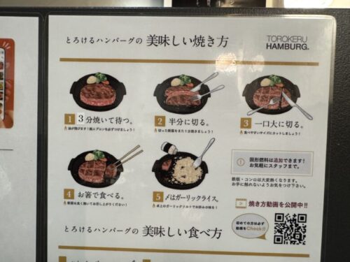 「詳しい焼き方などはこちらのPOPにも記載ございますし、お申しつけいただければ目の前でスタッフが焼くことも可能です」