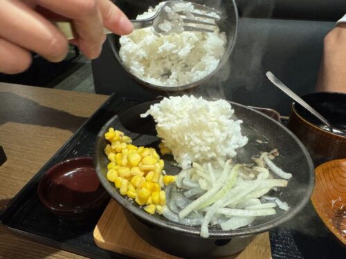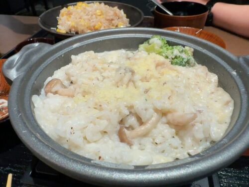 煮込みハンバーグはあっという間にリゾットに早変わりします。