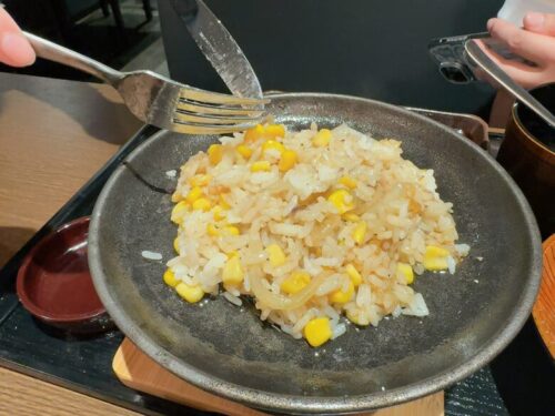 あっという間にハンバーグの香り立つガーリックライスが完成!