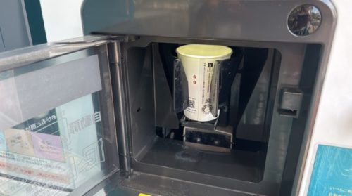 あとはしばらく待ちます。普通のカップ売りの自動販売機と同じですね。