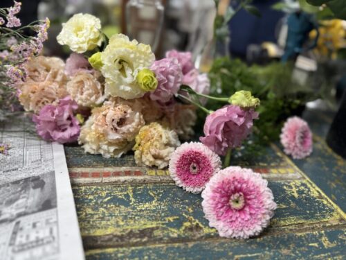 「実はここにくる前にトルコギキョウ農家さんのところに行ってきて、規格外のお花をたくさんいただいたんです。そこで、これらの規格外のお花をどうにかする方法があれば教えていただけないかと!」