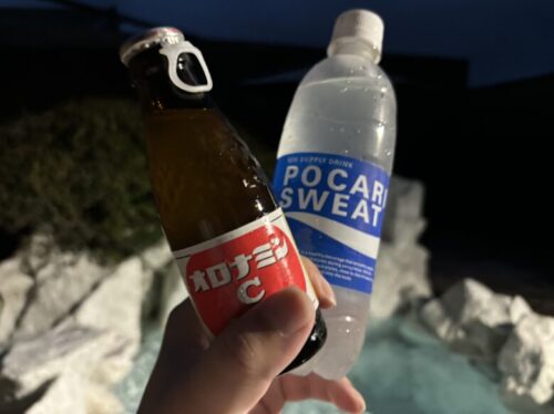 あがった後にはちゃっかりオロポ(オロナミンCとポカリスエットを混ぜた飲み物)を頂きました!