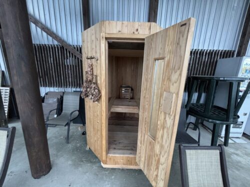 このサウナ実は1~2人用で、縦に長い形をしていてその名の通りご自宅での設置型として作られたサウナです。