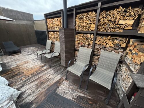 このお陰で、ストーブから近からず遠くもない距離で足を伸ばしながらロウリュが可能です!