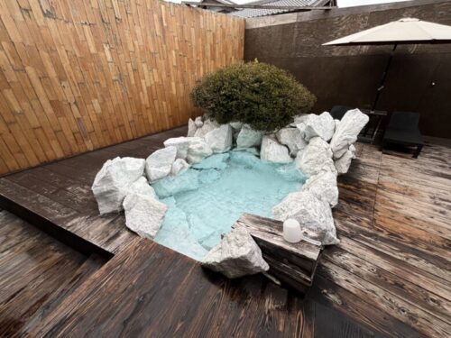 この真っ白な石で出来た水風呂は、トトノウバイの象徴的なシンボルの1つです。