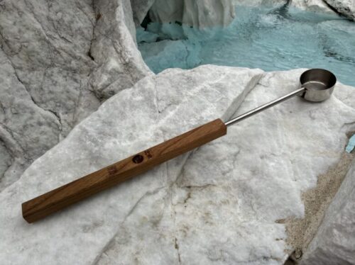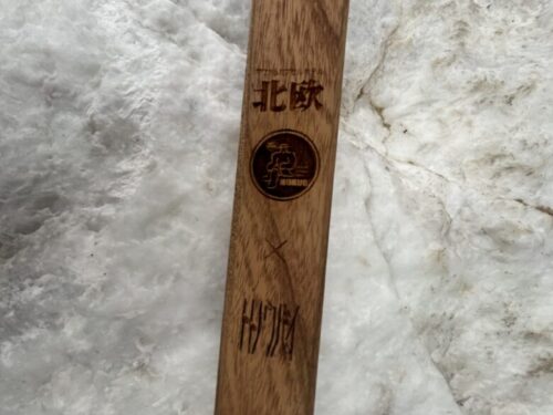 ロウリュウ時に熱くない様長く設計されているの事が特徴で、柄の持ち手部分には「北欧×トトノウバイ」の文字が!