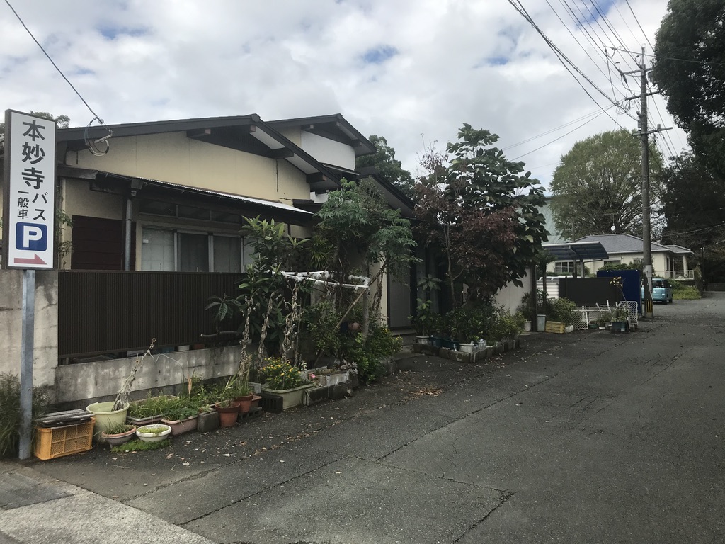 本妙寺駐車場の看板が目印(この看板を右折し駐車場に入る)です。