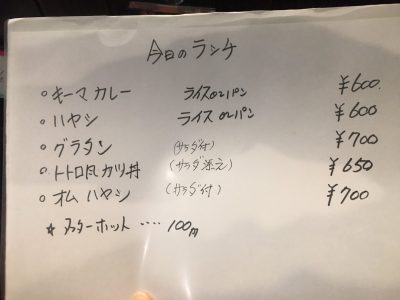 カレーやハヤシ、グラタンなどパンによく合いそうなメニューが並んでいます。