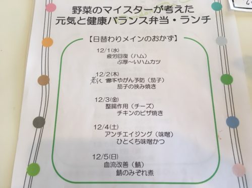 日替わりランチは、疲労回復や整腸作用などの期待される健康効果まで書いてあり、より美味しく食べられそうです。「老化」の変換ミスを、手書きで書き直してあるあたりも、微笑ましく思えます。