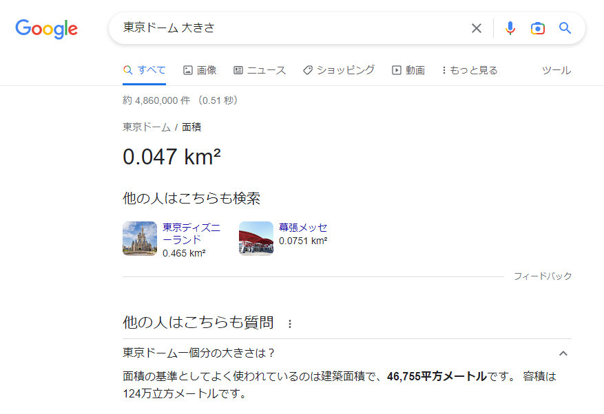 「ここは東京ドーム〇個分です」というワードを聞いた際には