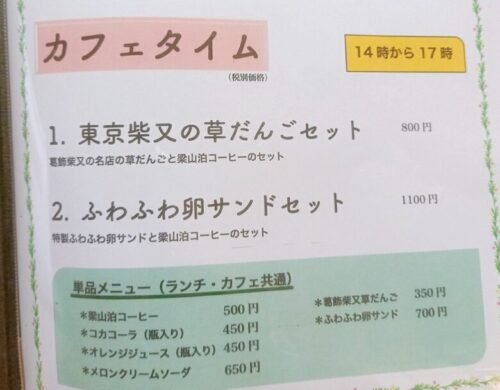 「こたや」時代に人気だった草団子とコーヒー付きのコース「松」もありますし、食後に追加で注文もできます。