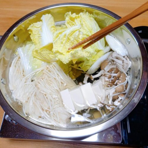 昆布だしのお鍋で野菜を煮て、