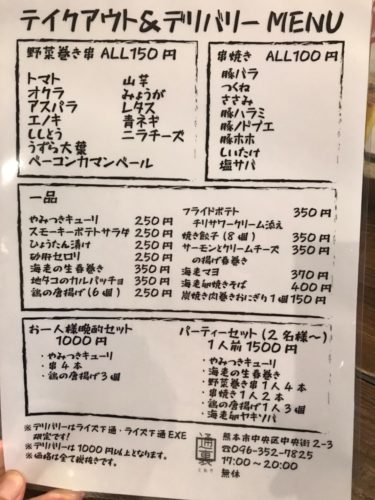 以前、肥後ジャーナルでもご紹介した、「野菜巻き串屋 通裏」は、様々な野菜を豚肉で巻いた野菜巻き串が人気のお店です。