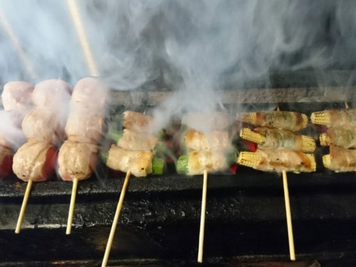 ミニトマトやヤングコーンなど、野菜一つ一つに丁寧に豚肉を巻き、こんがりと炭火で香ばしく焼き上げられた野菜巻き串、「おいしかったなぁ~」と記憶に残っているお店です。