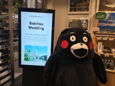 自動ドアを開けると、外国人観光客にも大人気の大きなくまモンがお出迎えしてくれます。