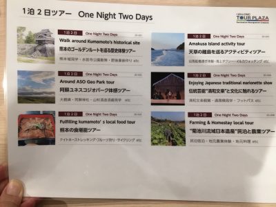 1泊2日のツアーは、阿蘇ユネスコジオパーク体感ツアーや天草の離島を巡るアクティビティツアー、菊池川流域日本遺産民泊と農業ツアーなど、こちらも個性的なプランが並びます。