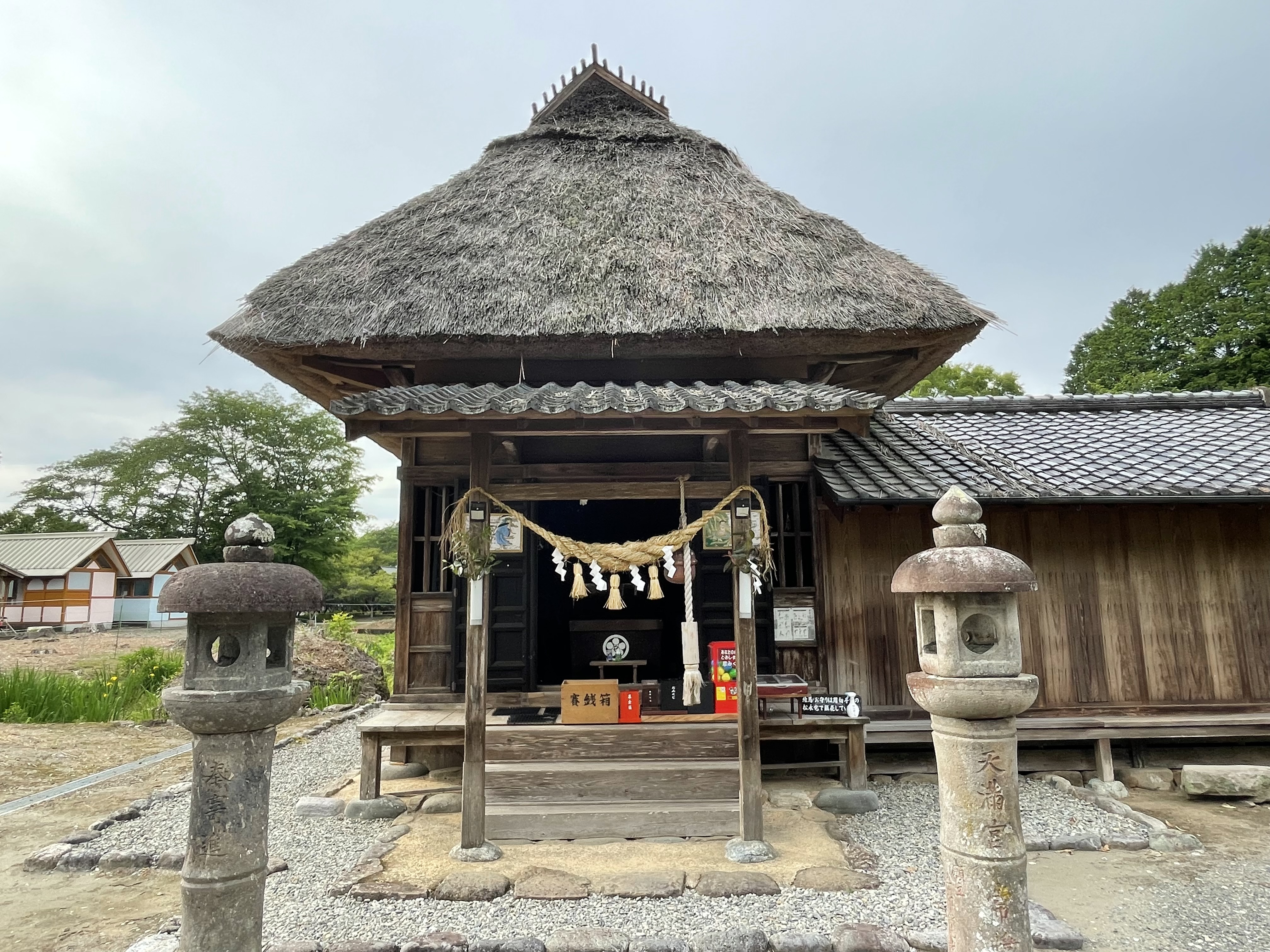 ということで、試験に通りたい受験生が合格祈願に来るこの神社。16世紀に建立された本殿がそのまま残っており、国内でも貴重な茅葺き屋根の神社です。